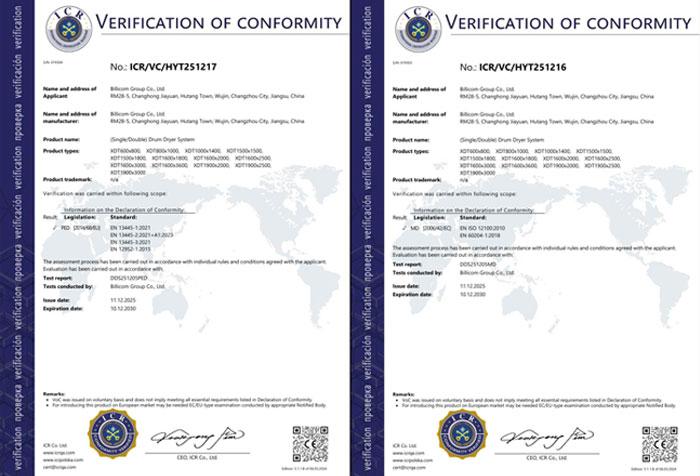 Warm congratulations to our company's drum dryer for obtaining PED and CE certificates